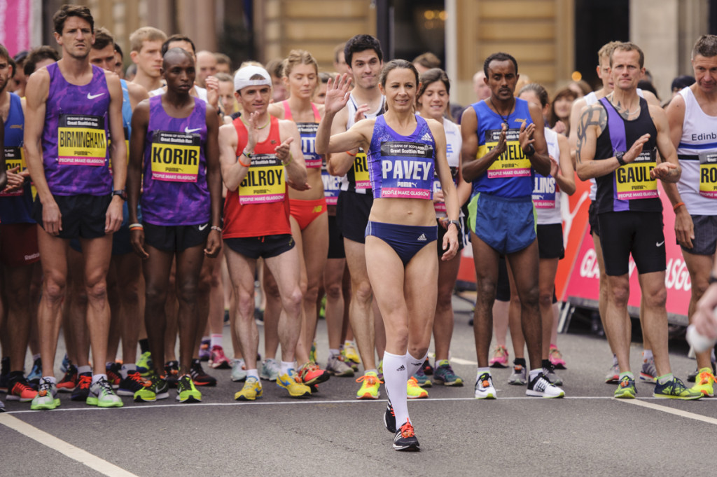 Jo on the start-line in Glasgow in 2016 (photo by Bobby Gavin)