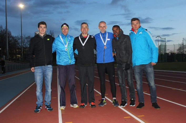 A few of the Masters medallists in Scottish 10,000m Champs last year with Derek and Callum Hawkins