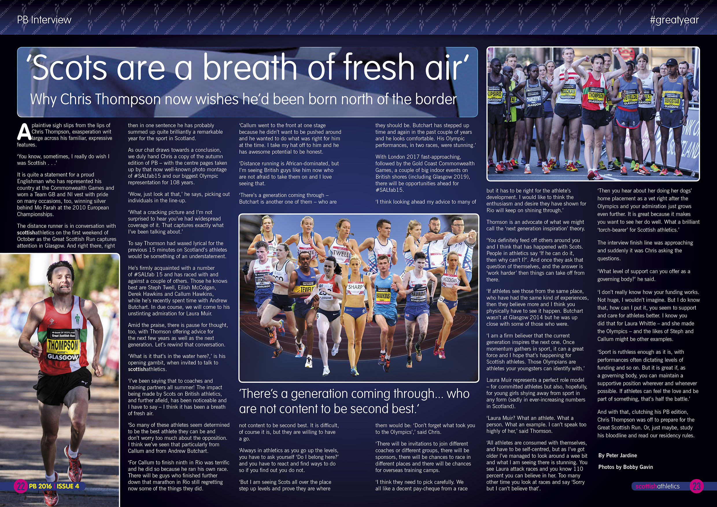‘The impact being made by Scots on British athletics, and further afield, has been noticeable and I have to say – I think it has been a breath of fresh air,’ said Thompson, in a special 44-page 2016 Review edition of PB magazine, which has been issued to scottishathletics members.